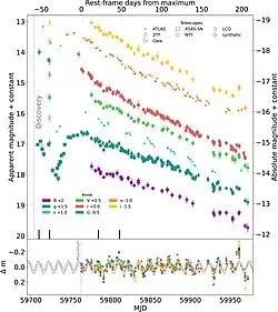 - 1 2 3 4 5 Moore, T.; et al. (October 2023). "SN 2022jli: A Type Ic Supernova with Periodic Modulation of Its Light Curve and an Unusually Long Rise". The Astrophysical Journal Letters. 956 (1): L31. arXiv:2309.12750. Bibcode:2023ApJ...956L..31M. doi:10.3847/2041-8213/acfc25. ISSN 2041-8205.