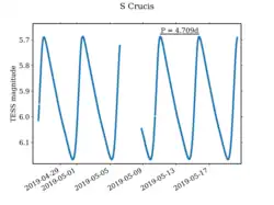 - 1 2 3 4 5 Watson, Christopher (4 January 2010). "S Crucis". AAVSO Website. American Association of Variable Star Observers. Retrieved 12 March 2014.