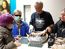 Tactile star charts and models of celestial objects help people with impaired vision to experience these objects and aid in the learning process by enabling the tactile sense.[11] Depending on their kind and design, tactile star charts can be used to illustrate constellations (stars on a plane), proportions and siting (3D model). 3D printed models of the lunar surface, of whole moons, comets and asteroids enable blind people to gather an impression of their surface structure and form.