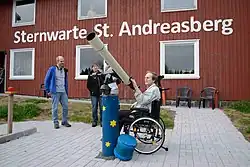 The Sankt Andreasberg Observatory, also called Harz Observatory, is a project of the charitable society Sternwarte Sankt Andreasberg e. V., which translates into Sankt Andreasberg Observatory registered society.[1] It was opened in August 2014 and is supposed to become the first completely barrier free[2] Observatory in Germany.[3] The society's expressive goal is to make the sky accessible to all people, whether they are disabled or not. Celestial observation, lectures[4] and Workshops[5] convey general astronomical knowledge to visitors.