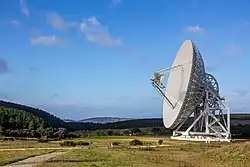 The telescope is in Sardinia, 35 kilometres (22 mi) north of Cagliari,[1] and is the largest[2] of a set of three telescopes operated by INAF, along with telescopes at the Medicina Radio Observatory and the Noto Radio Observatory. It operates as a stand-alone instrument and as part of global networks of telescopes. The telescope and its structure weighs around 3,300 tonnes (3,300,000 kg).[1]