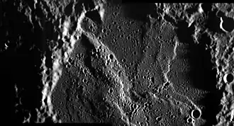 The scarps Blossom Rupes extend from Savage to the southern rim of Caravaggio crater.[2]