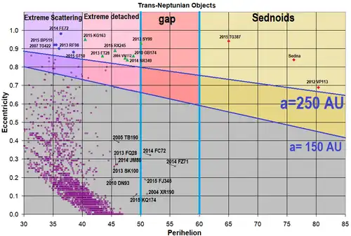 | 2012 VP113 | A sednoid with a large perihelion of 80 AU from the Sun (50 AU beyond Neptune). |
