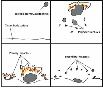 - ↑ "Secondary Cratering" (PDF). 2006. Retrieved 15 May 2015.