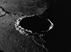 Seleucus is a lunar impact crater located in the western part of Oceanus Procellarum. To the west is the lava-flooded remains of the walled plain Eddington. To the southwest is the crater Krafft and to the northwest lies Briggs.