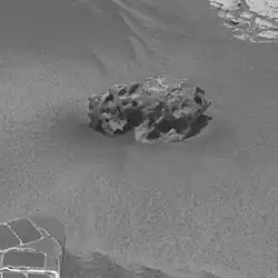 ![]() Shelter Island meteorite viewed by the Opportunity rover (October 3, 2009). | |