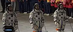 ![]() Shenzhou 13 mission patch ![]() Ye Guangfu, Zhai Zhigang and Wang Yaping Shenzhou programme | |
