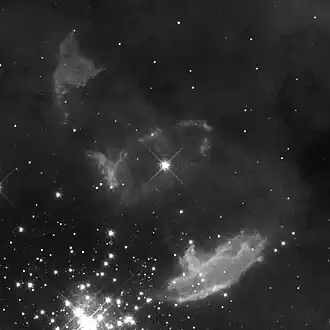 - ↑ Brandner, Wolfgang; Grebel, Eva K.; Chu, You-Hua; Weis, Kerstin (January 1997). "Ring Nebula and Bipolar Outflows Associated with the B1.5 Supergiant Sher 25 in NGC 3603". Astrophysical Journal Letters. 475 (1): L45. arXiv:astro-ph/9611046. Bibcode:1997ApJ...475L..45B. doi:10.1086/310460. S2CID 18830644.