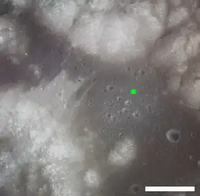 ![]() Location of Sherlock crater in Taurus–Littrow valley. South Massif is at lower left, North Massif is at top center, and Sculptured Hills are at upper right. Scale bar is 5 km | |
