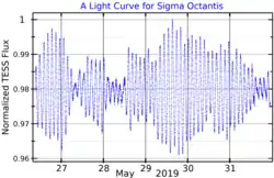 A light curve for Sigma Octantis, plotted from TESS data[11]