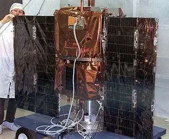The spacecraft carried four instruments designed to measure the anomalous components of cosmic rays, emissions from solar energetic particles, and electron counts in Earth's magnetosphere. Built for a three-year mission, its science mission was ended on 30 June 2004.[5] Mission control for SAMPEX was handled by the Goddard Space Flight Center until October 1997, after which it was turned over to the Bowie State University Satellite Operations Control Center (BSOCC).[1] BSOCC, with funding assistance from The Aerospace Corporation, continued to operate the spacecraft after its science mission ended, using the spacecraft as an educational tool for its students while continuing to release science data to the public.[6][7]