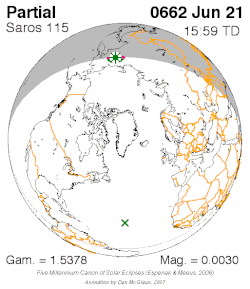 | 115 | 1 | June 21, 662 | 15:58:36 | Partial | 66N 148.9E | 1.5377 | 0.003 | |||