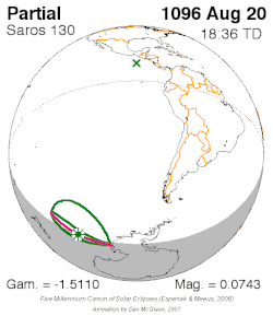 | 130 | 1 | August 20, 1096 | 18:35:35 | Partial | 61.4S 164.7W | -1.511 | 0.0743 | |||