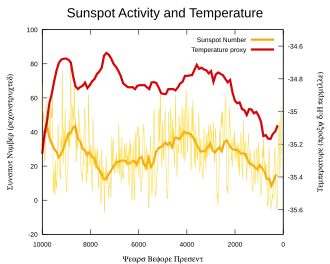 - ↑ Chatzistergos, Theodosios (2022-12-27). "Is there a link between the length of the solar cycle and Earth's temperature?". Rendiconti Lincei. Scienze Fisiche e Naturali. 34: 11–21. doi:10.1007/s12210-022-01127-z. ISSN 2037-4631.
