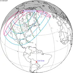 - The midpoint of the eclipse being near the subsolar point (the part of Earth closest to the Sun).
