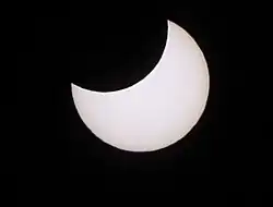 ![]() During a partial solar eclipse, the Moon blocks only part of the Sun's disk (October 25, 2022). |