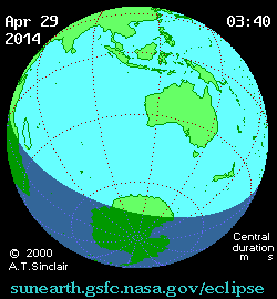 - ↑ "Annular Solar Eclipse of 2014 Apr 29". EclipseWise.com. Retrieved 12 August 2024.