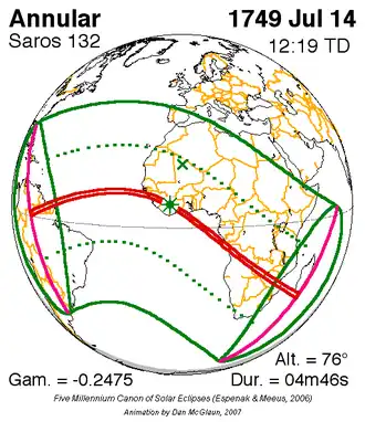 - 1 2 "Solar eclipse of July 14, 1749". NASA. Retrieved March 20, 2017.