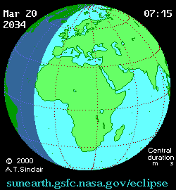 - ↑ "Total Solar Eclipse on March 20, 2034: Path Map and Times". www.timeanddate.com. Retrieved 2024-04-19.