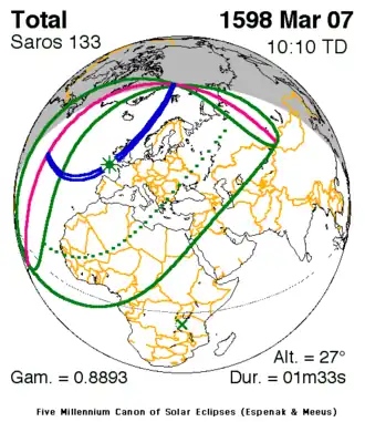 - Total Eclipse of the Sun: 1598 March 07 Archived 2017-04-10 at the Wayback Machine