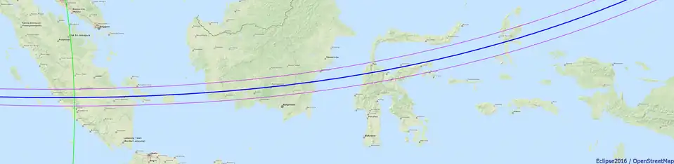 - "Total solar eclipse of 2016 Mar 09, Google Maps and Solar Eclipse Paths". NASA. Retrieved March 10, 2016.