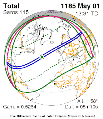 - ↑ "The total solar eclipse of May 1, 1185". Catalog of Solar Eclipses. Totality Dive. Retrieved March 30, 2015.