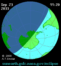 - ↑ "Partial Solar Eclipse of 2033 Sep 23". EclipseWise.com. Retrieved 14 August 2024.