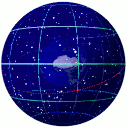 The southern celestial hemisphere, also called the Southern Sky, is the southern half of the celestial sphere; that is, it lies south of the celestial equator. This arbitrary sphere, on which seemingly fixed stars form constellations, appears to rotate westward around a polar axis as the Earth rotates.