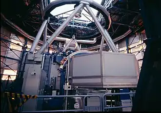 Spectroscopic studies were central to the development of quantum mechanics, because the first useful atomic models described the spectra of hydrogen, which include the Bohr model, the Schrödinger equation, and Matrix mechanics, all of which can produce the spectral lines of hydrogen, therefore providing the basis for discrete quantum jumps to match the discrete hydrogen spectrum. Also, Max Planck's explanation of blackbody radiation involved spectroscopy because he was comparing the wavelength of light using a photometer to the temperature of a Black Body.[11] Spectroscopy is used in physical and analytical chemistry because atoms and molecules have unique spectra. As a result, these spectra can be used to detect, identify and quantify information about the atoms and molecules. Spectroscopy is also used in astronomy and remote sensing on Earth. Most research telescopes have spectrographs. The measured spectra are used to determine the chemical composition and physical properties of astronomical objects (such as their temperature, density of elements in a star, velocity, black holes and more).[12] An important use for spectroscopy is in biochemistry. Molecular samples may be analyzed for species identification and energy content.[13]