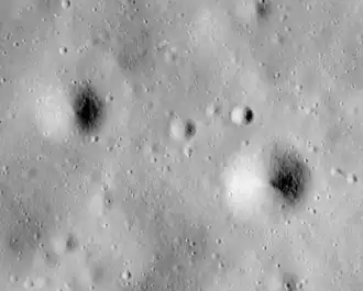 ![]() Apollo 16 image, with Flag left of center and Spook right of center. Buster is the small crater north of Spook. | |