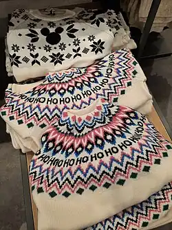 In European textiles a common eight-pointed star design is known as the Holy Star of Bethlehem. The design has been used in stone, metal, wood-work and embroidery in the Middle East since antiquity and is one of the oldest patterns in patterns in Palestinian tatreez.[136] In 2019 US congresswoman Rashida Tlaib was sworn in wearing a thobe that featured the design.[137] On Vogue Arabia's November 2023 cover the star took a central position in the celebration of Palestinian embroidery.[138] The design also features on Christmas sweaters.