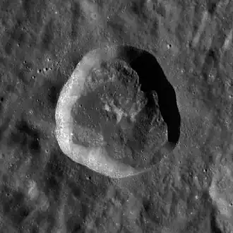 This crater lies to the northwest of the Mendel-Rydberg Basin, a 630 km-wide impact basin of Nectarian age.