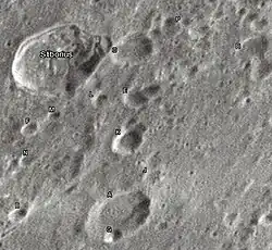 By convention these features are identified on lunar maps by placing the letter on the side of the crater midpoint that is closest to Stiborius.[5]