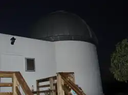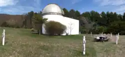 The observatory has one 16-foot-diameter (4.9 m) silo-type room housing a 14-inch Celestron Compustar telescope owned by James Madison University under a powered Ash observatory dome. An adjoining shaped room houses astronomy displays and materials used for instructional classes. The building is surrounded by a circle of 8 powered piers for mounting additional telescopes.