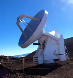 The Submillimeter Array (SMA) consists of eight 6-meter (20 ft) diameter radio telescopes arranged as an interferometer for submillimeter wavelength observations. It is the first purpose-built submillimeter interferometer, constructed after successful interferometry experiments using the pre-existing 15-meter (49 ft) James Clerk Maxwell Telescope and 10.4-meter (34.1 ft) Caltech Submillimeter Observatory (now decommissioned) as an interferometer. All three of these observatories are located at Mauna Kea Observatory on Mauna Kea, Hawaii, and have been operated together as a ten element interferometer in the 230 and 345 GHz bands (eSMA, for extended Submillimeter Array). The baseline lengths presently in use range from 16 to 508 meters (52 to 1,667 ft). The radio frequencies accessible to this telescope range from 194–408 gigahertz (1.545–0.735 mm) which includes rotational transitions of dozens of molecular species as well as continuum emission from interstellar dust grains. Although the array is capable of operating both day and night, most of the observations take place at nighttime when the atmospheric phase stability is best.