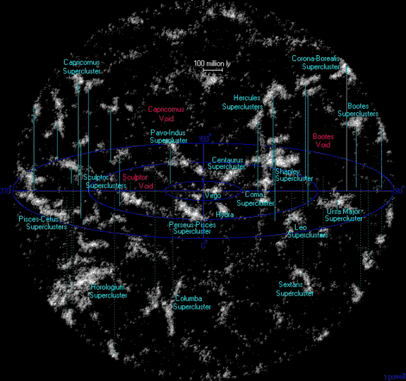 A 2014 study indicates that the Virgo Supercluster is only a lobe of an even greater supercluster, Laniakea.[11] |