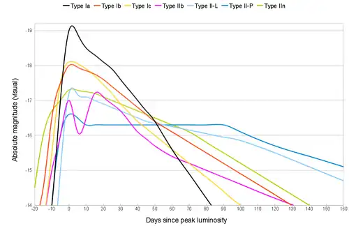 - ↑ Richardson, D.; Branch, D.; Casebeer, D.; Millard, J.; Thomas, R. C.; Baron, E. (2002). "A Comparative Study of the Absolute Magnitude Distributions of Supernovae". The Astronomical Journal. 123 (2): 745–752. arXiv:astro-ph/0112051. Bibcode:2002AJ....123..745R. doi:10.1086/338318. S2CID 5697964.