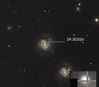 - ↑ Shao, X.; Liang, Y. C.; Dennefeld, M.; Chen, X. Y.; Zhong, G. H.; Hammer, F.; Deng, L. C.; Flores, H.; Zhang, B.; Shi, W. B.; Zhou, L. (25 July 2014). "Comparing the Host Galaxies of Type Ia, Type II, and Type Ibc Supernovae". The Astrophysical Journal. 791 (1): 57. arXiv:1407.0483. Bibcode:2014ApJ...791...57S. doi:10.1088/0004-637X/791/1/57. ISSN 0004-637X.