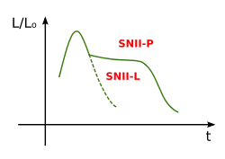 | Type II-L Displays a "linear" decrease in its light curve (linear in magnitude versus time)[64] | ||||||||