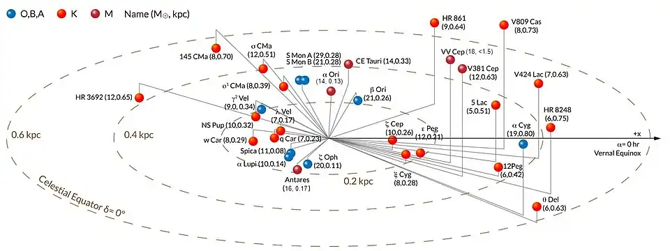 - ↑ Georgy, C. (2012). "Yellow supergiants as supernova progenitors: An indication of strong mass loss for red supergiants?". Astronomy & Astrophysics. 538: L8 – L2. arXiv:1111.7003. Bibcode:2012A&A...538L...8G. doi:10.1051/0004-6361/201118372. S2CID 55001976.