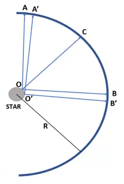 Neutrinos undergo flavor conversions after they thermally decouple from the proto-neutron star. Within the neutrino-bulb model, neutrinos of all flavors decouple at a single sharp surface near the surface of the star.[32] Also, the neutrinos travelling in different directions are assumed to travel the same path length in reaching a certain distance R from the center. This assumption is known as single angle approximation, which along with spherical symmetricity of the supernova, allows us to treat neutrinos emitted in the same flavor as an ensemble and describe their evolution only as a function of distance.[22]