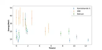 - ↑ Supernova neutrinos refer to both neutrinos and antineutrinos emitted from the supernova.