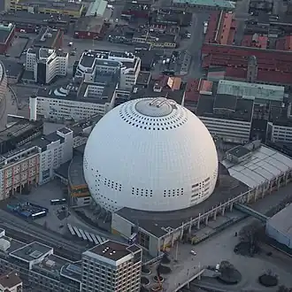 The Sweden Solar System is the world's largest permanent scale model of the Solar System. The Sun is represented by the Avicii Arena in Stockholm, the second-largest hemispherical building in the world. The inner planets can also be found in Stockholm but the outer planets are situated northward in other cities along the Baltic Sea. The system was started by Nils Brenning, professor at the Royal Institute of Technology in Stockholm, and Gösta Gahm, professor at the Stockholm University.[1][2] The model represents the Solar System on the scale of 1:20 000 000, i.e. one metre represents 20,000 km.[3]