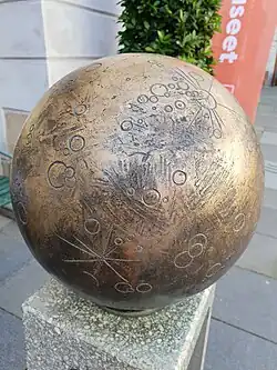 - Ixion (6.5 cm (2.6 in) in diameter), a dwarf planet candidate, is located at Technichus, a science center in Härnösand, 360 km (224 mi) from the Globe. The sculpture is an orb held by a hand with the arm. This plutino was discovered by a team which included scientists from Uppsala.