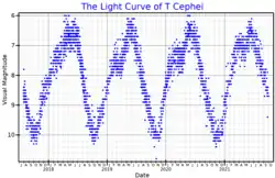 - 1 2 VSX (4 January 2010). "T Cep". AAVSO Website. American Association of Variable Star Observers. Retrieved 1 July 2014.