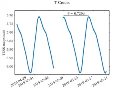Light curve of T Crucis recorded by NASA's Transiting Exoplanet Survey Satellite (TESS)