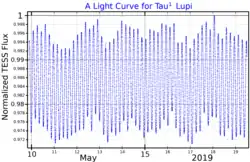 - 1 2 Cuypers, J. (June 1987), "New observations and frequency analysis of the Beta Cephei star Tau1 Lupi", Astronomy and Astrophysics Supplement Series, 69 (3): 445–449, Bibcode:1987A&AS...69..445C.