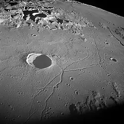 ![]() Lunar Orbiter 4 image of Triesnecker crater and the Rille systerm | |