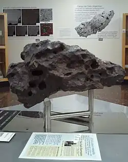 Photo of the 162 kilograms (357 lb) Clark Iron in the UCLA meteorite museum.