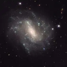 UGC 9391 is a Magellanic spiral galaxy in constellation Draco. 130 million light years from Earth, it is not a member of any group of galaxies, and is moving away from the Earth at 1939 km/s.[2]
